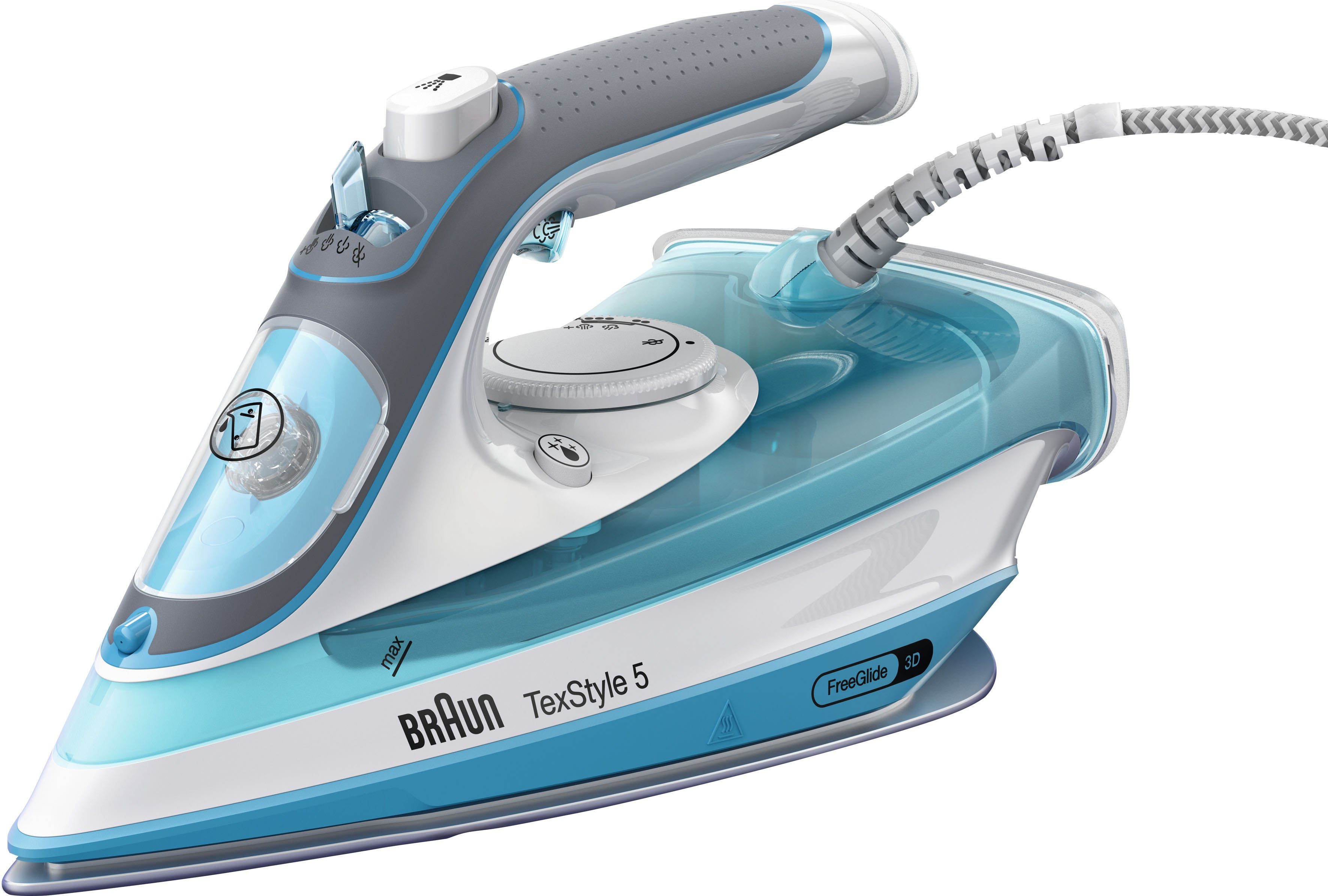 Amazon De Braun Texstyle 7 Dampfbugeleisen Ts 725 A Bugeleisen Mit Eloxal Bugelsohle Automatischer Abschaltung 2400 Watt Dampfstoss 180 G Min 400 Ml Wassertank Blau