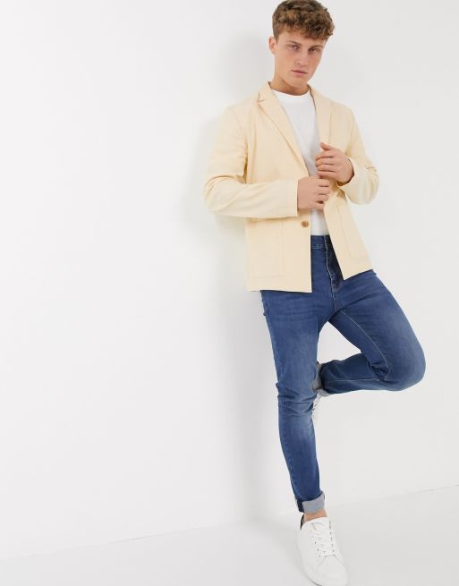 Evesham Nj Design Ungefutterter Weicher Leinen Blazer Mit Enger Passform In Stein Evesham Nj